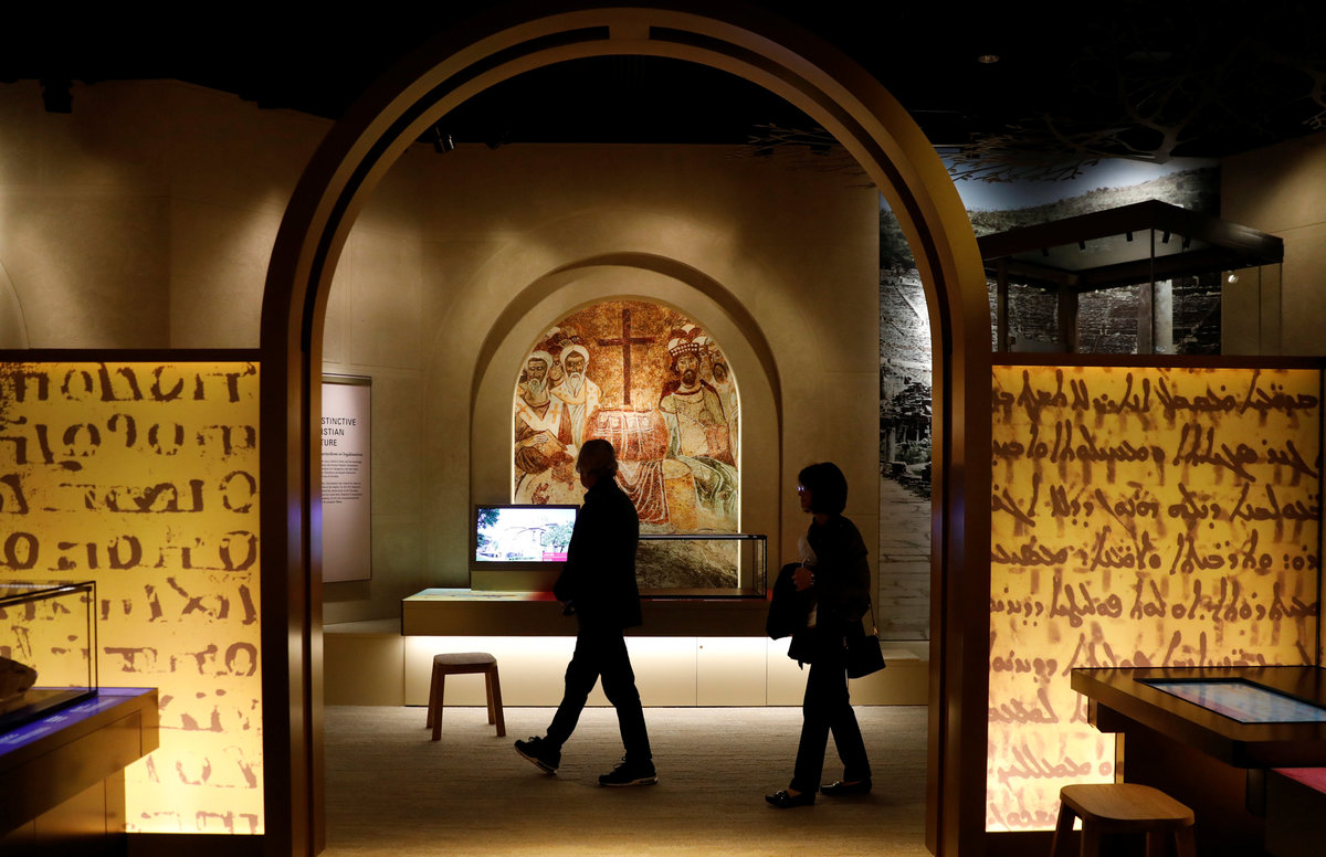 Visitors enter an exhibition at the Museum of the Bible during a preview day in Washington, U.S., November 14, 2017. REUTERS/Kevin Lamarque
