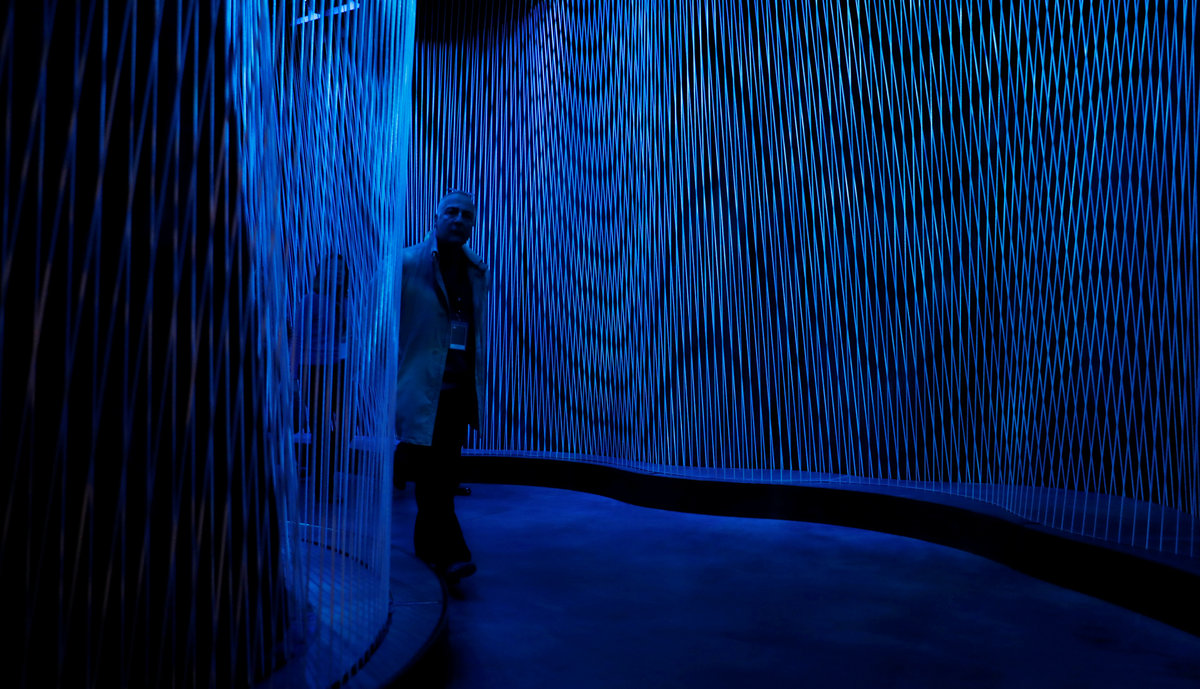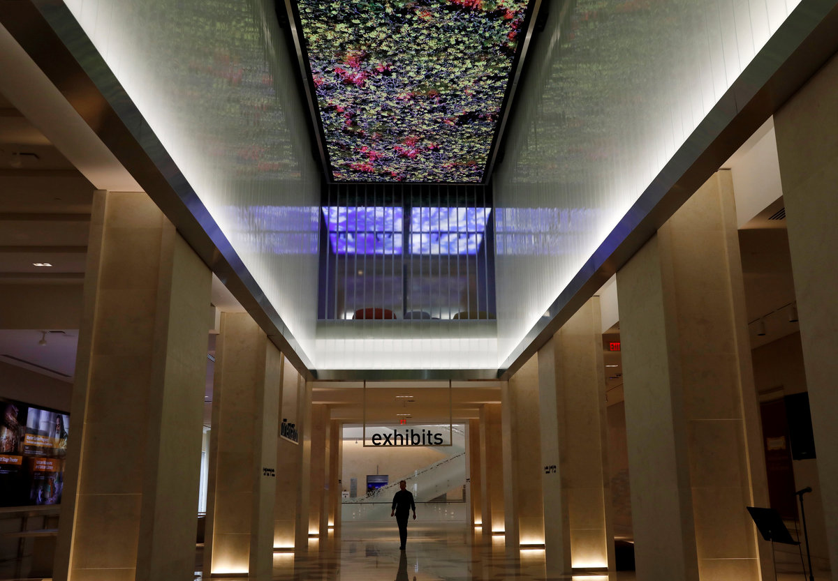 With a digital arcade ceiling above, a visitor walks down the entrance hall of the Museum of the Bible during a preview day in Washington, U.S., November 14, 2017. REUTERS/Kevin Lamarque