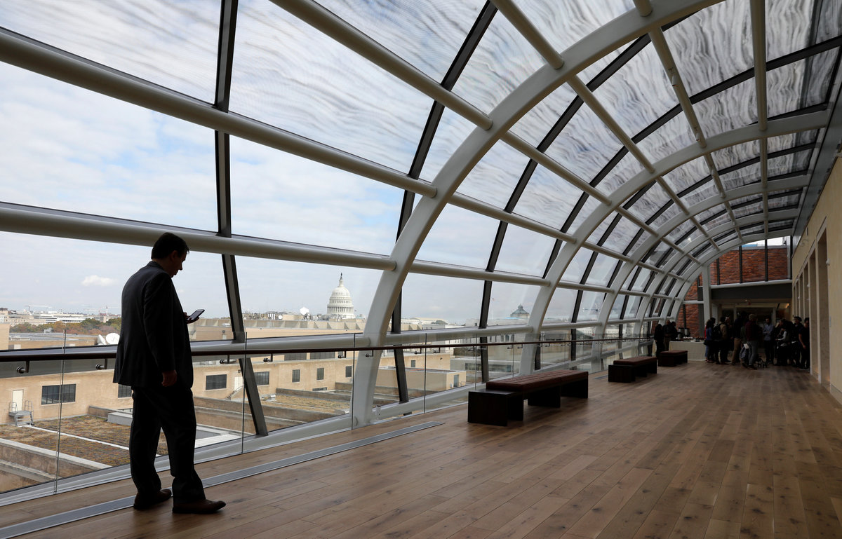 The dome of the U.S. Capitol is seen from the top floor of the Museum of the Bible during a preview day in Washington, U.S., November 14, 2017. REUTERS/Kevin Lamarque