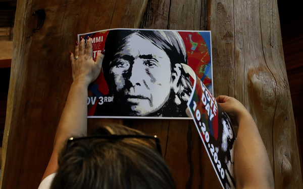 LUMMI NATION _ Freddie Lane gathered up T-shirts, posters and signs at the tribal administration building, getting ready for a Native Vote 2020 rally, planned for later this month at Lummi and reservations across the state.
