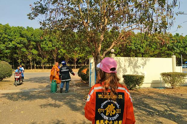 The workers from Hook 31, a charitable foundation in this northeastern province, arrived at Nikom Sang Ton-eng 3 School in Phimai with equipment - gas cylinders and pipes - on Sunday morning after receiving a call for help from the school.