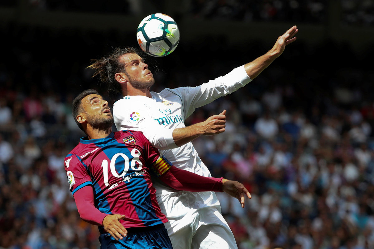 Soccer Football - Spanish La Liga Santander - Real Madrid vs Levante - Madrid, Spain - September 9, 2017 Levante’s Pedro Lopez in action with Real Madrid’s Gareth Bale REUTERS/Susana Vera