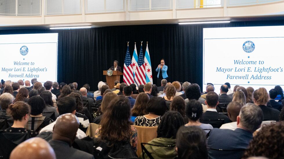 Mayor Lori Lightfoot bid a tearful farewell to Chicago on Monday, saying she is “more optimistic about our city’s future than ever” because of the “work our administration has done” to “plant the seeds of equity.”