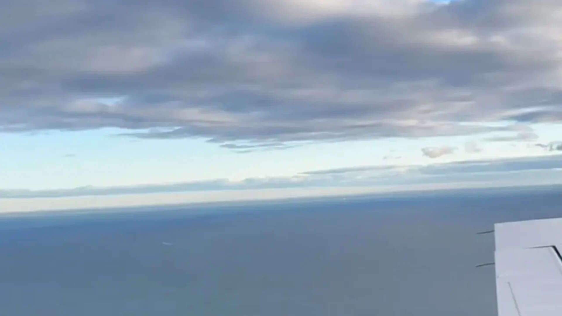 Video circulating on social media showed the top portion of the door ajar with the sky and ocean visible through the gap, while passengers remained seated nearby.