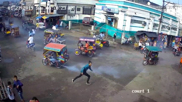 Footage from two CCTV cameras released by the Armed Forces of the Philippines’ Western Mindanao Command (AFP Westmincom) captured the scene outside the cathedral before, during, and after two improvised explosive devices (IEDs) were detonated.