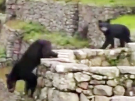 On 10 May, one Andean bear and its cub walked through the 15th-century Incan citadel, located in the Eastern Cordillera of southern Peru, on a 7,970 ft mountain ridge.