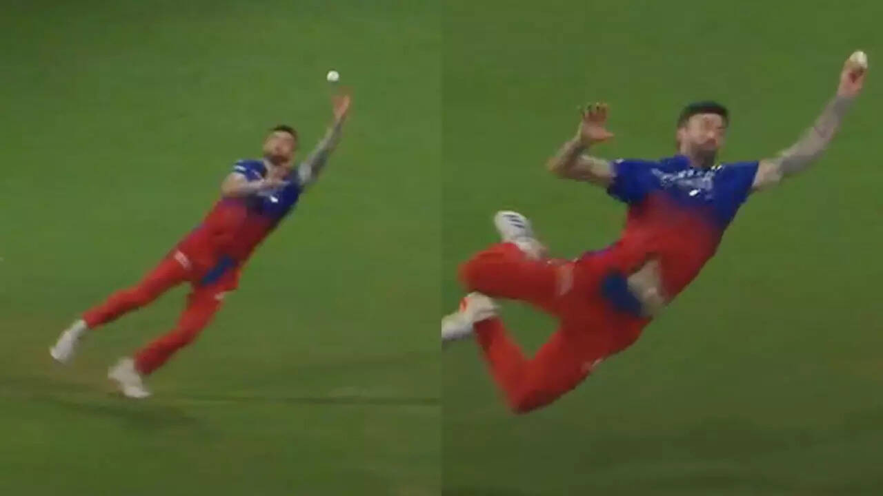 NEW DELHI: Royal Challengers Bengaluru's Reece Topley came up with a stunning fielding effort to get rid of Mumbai Indians batter Rohit Sharma in their Indian Premier League match at the Wankhede Stadium in Mumbai on Thursday.