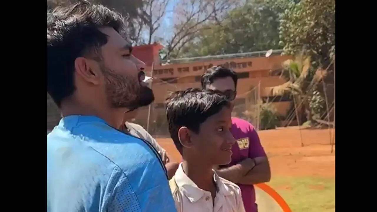 "Chhotu, zyada tez to nahi lagi? Kahan lagi? (hope you didn't get hit badly, where did you get hit)" Rinku asked the young boy on the sidelines of the practice session and then looked at his head where he got hit by the ball.