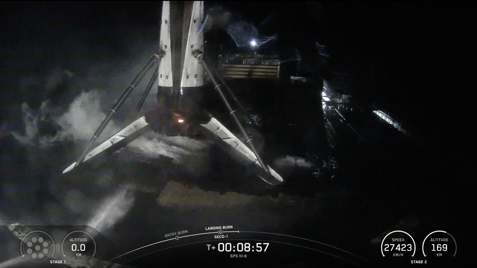 The Falcon 9's upper stage, meanwhile, will continue powering its way to medium-Earth orbit. It will deploy GPS III SV10 there about 90 minutes after liftoff.
