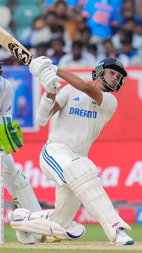 <p>On 191, Yashasvi Jaiswal hit two successive deliveries by England debutant Shoaib Bashir for a six and a four to get to his maiden Test double hundred. </p>PTI3/10:6 Tests old
