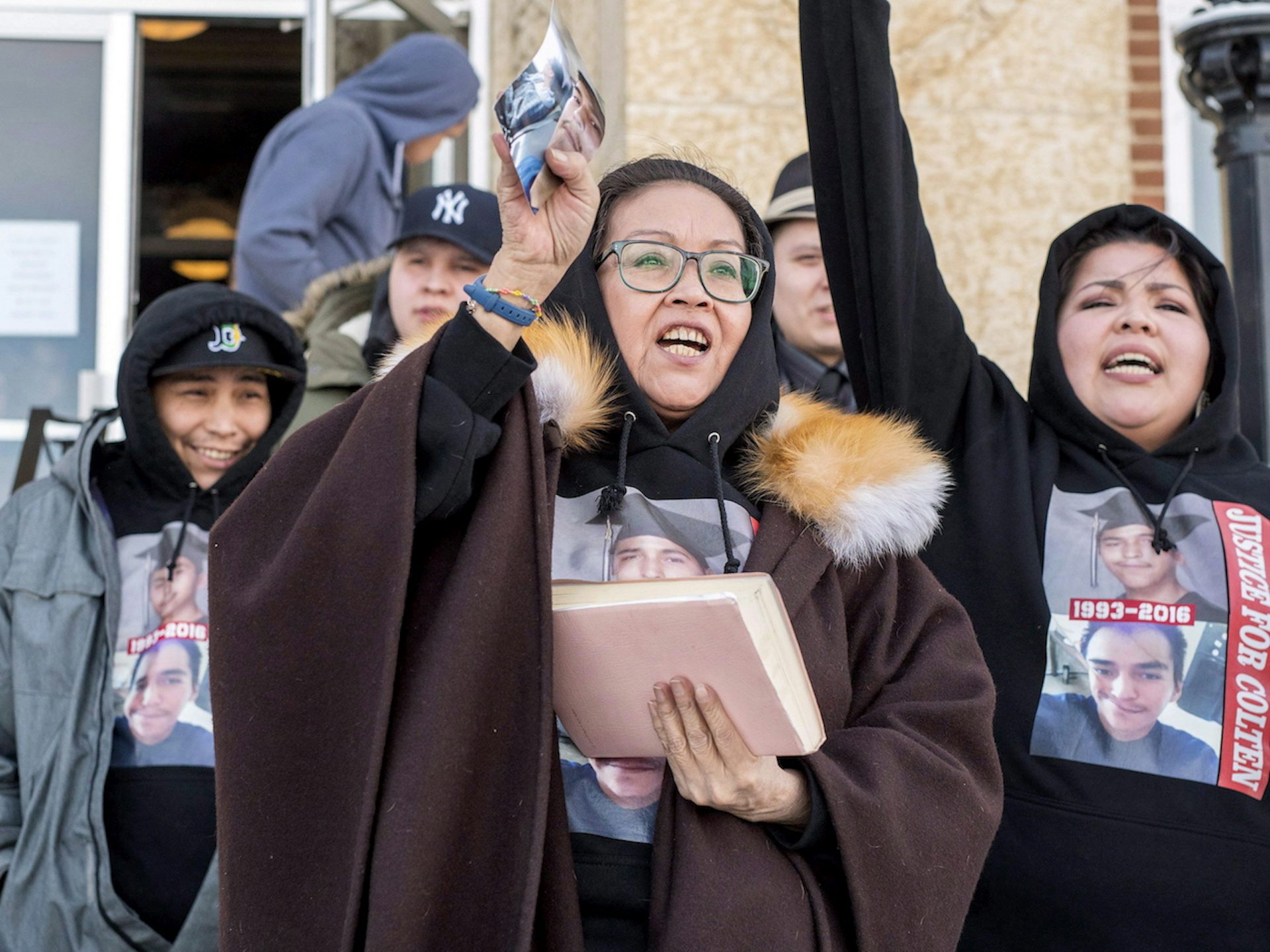 When the police went to Boushie’s mother’s home to notify her that her son had been killed, officers surrounded her home and invaded it, treating it as a threat. They executed an illegal search. And sniffed her breath to see if she had been drinking.