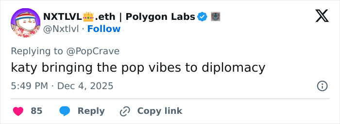 But netizens were far more focused on the “unexpected crossover” of politics and the pop world, with many calling out Perry for “trying too hard to be classy.”