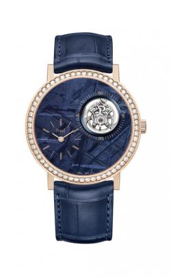 Also encircled by diamonds, the blue dial of the 41mm white-gold Altiplano Tourbillon is made from meteorite, whose surface features Widmanstätten patterns, typical of the crystallised nickel-iron structures found within the iron meteorites.