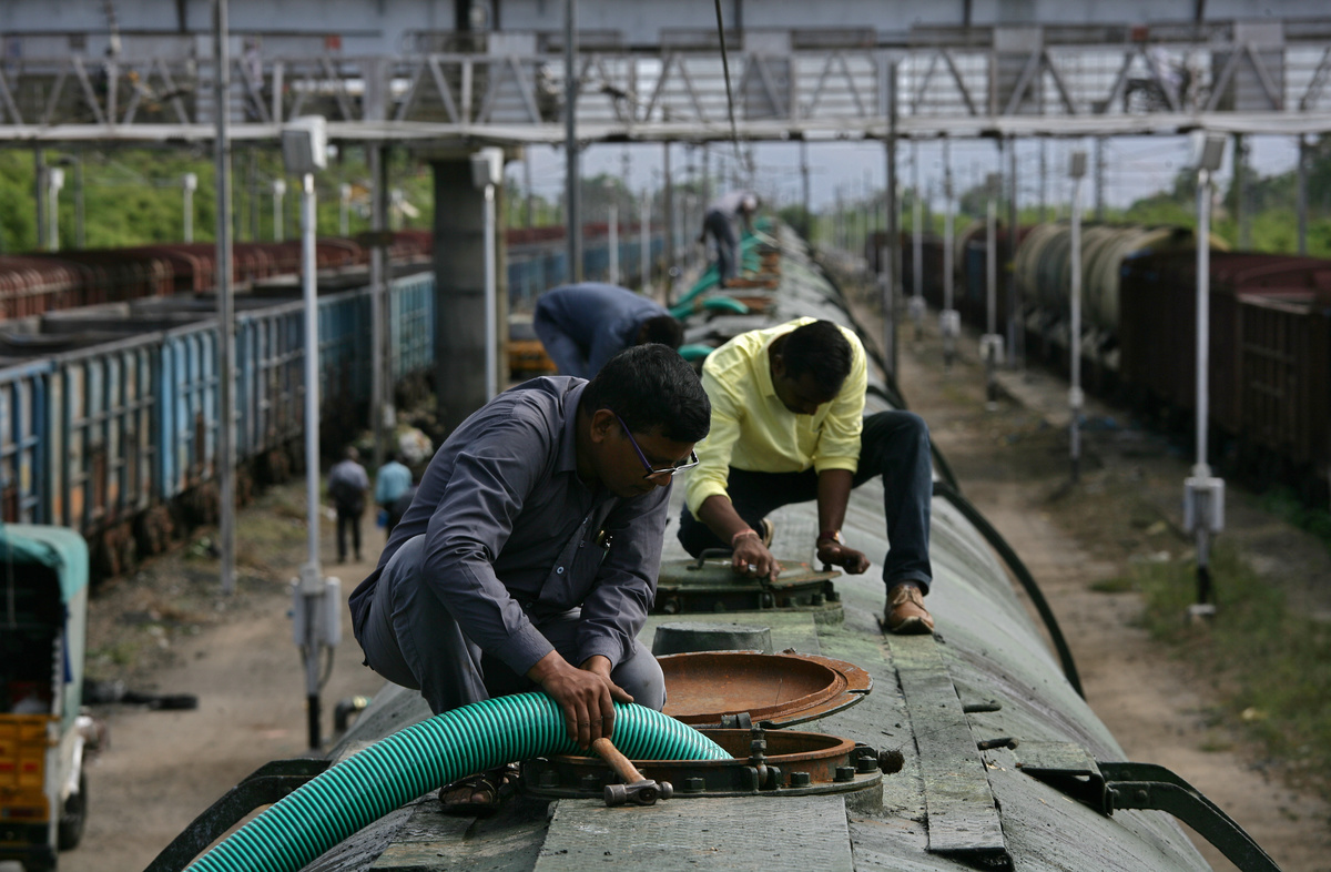 Technicians in the railway station at Jolarpettai, located over 135 miles (217 km) from Chennai, worked from early on Thursday to fill fifty wagons with 50,000 liters of water each, sourced from a south Indian river.