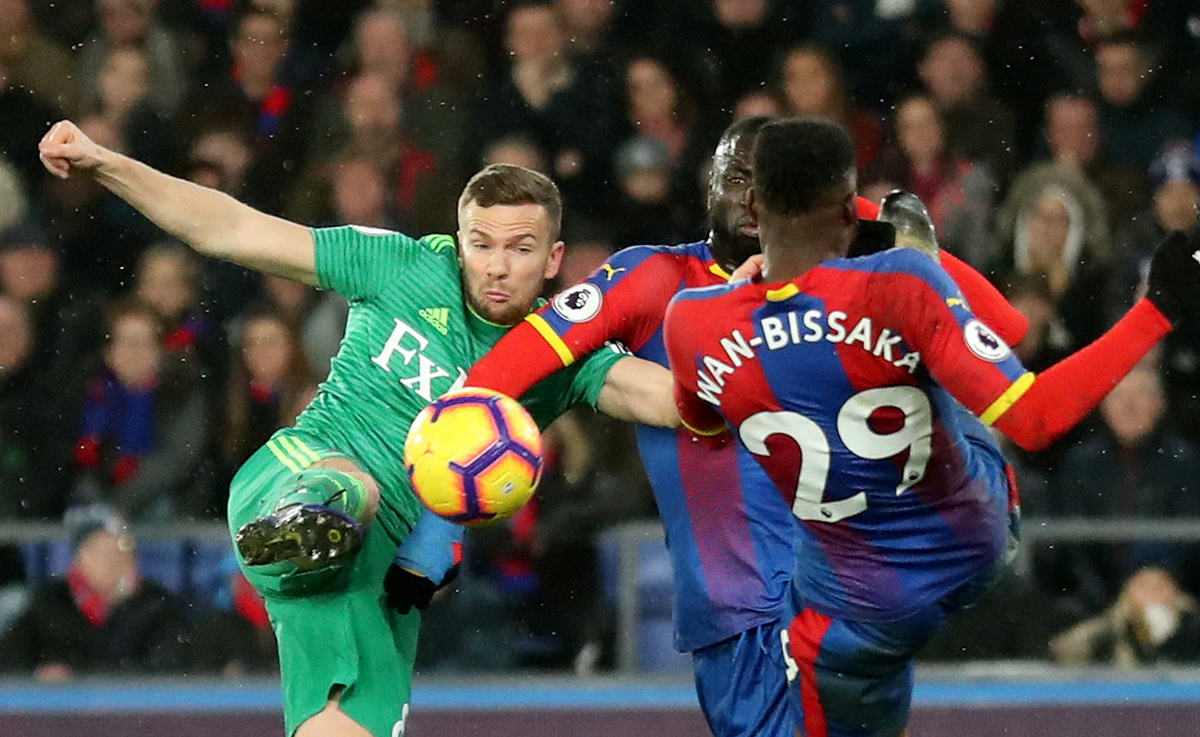 Palace survived two shots against the same post in the third minute and went ahead seven minutes before halftime with a Craig Cathcart own goal in a goalmouth melee following a corner.