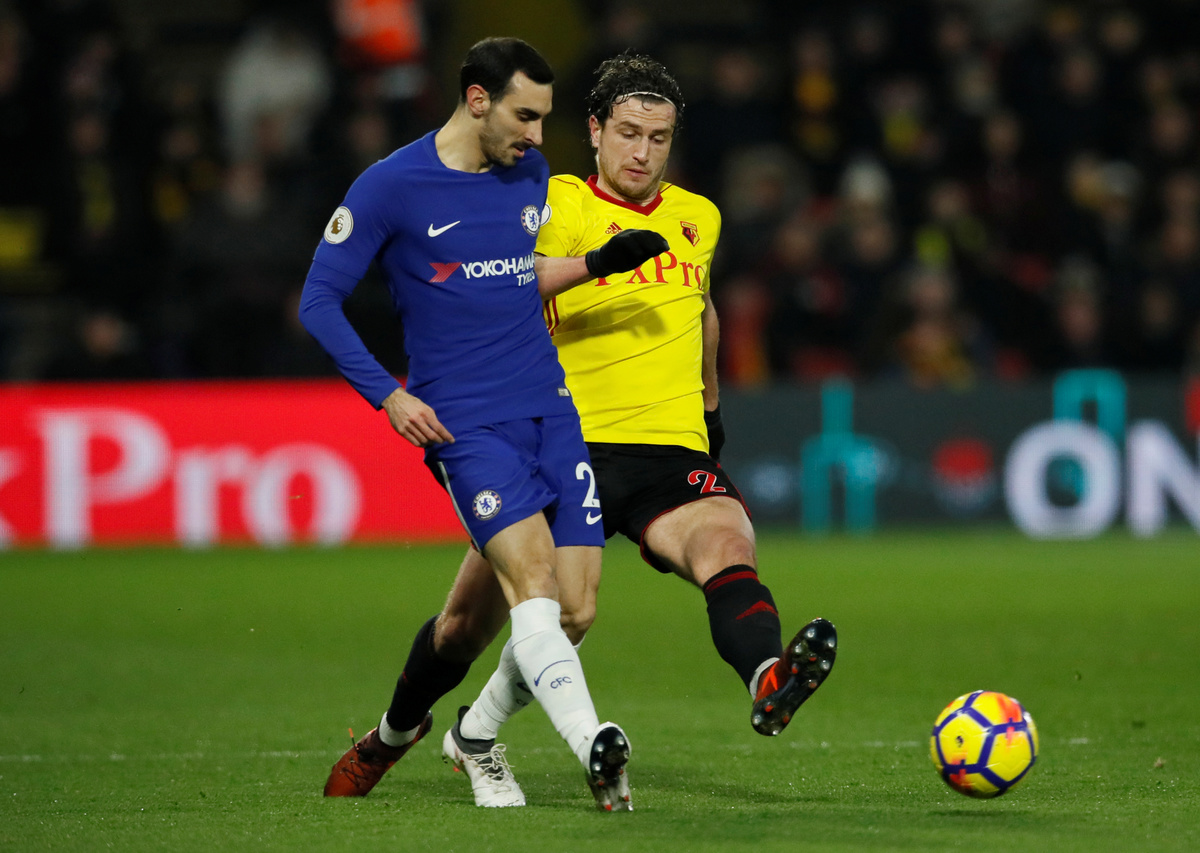 Soccer Football - Premier League - Watford vs Chelsea - Vicarage Road, Watford, Britain - February 5, 2018 Watford's Daryl Janmaat in action with Chelsea’s Davide Zappacosta REUTERS/David Klein