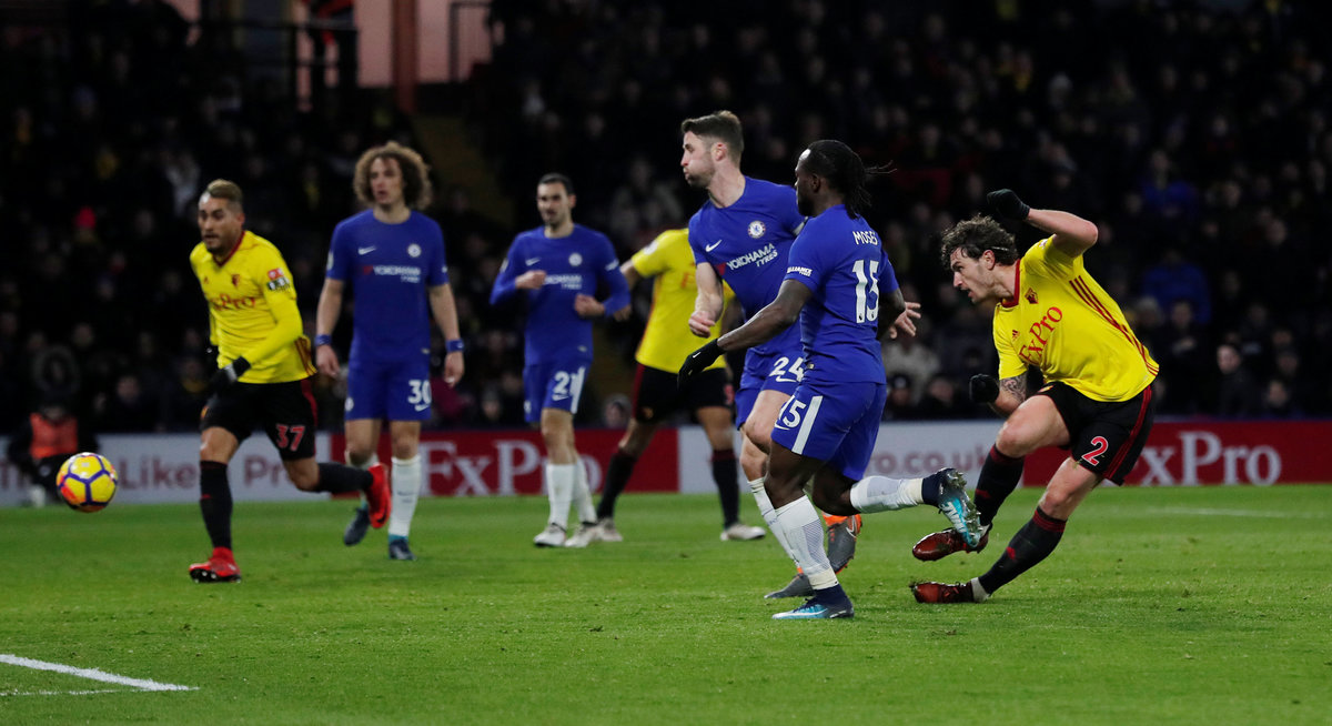 Watford reacted quickly to Hazard's equaliser as defender Janmaat exchanged passes with Pereyra before shooting low past Courtois. Deulofeu sealed the win in the 88th with his first goal for the club before Pereyra got the fourth in added time.