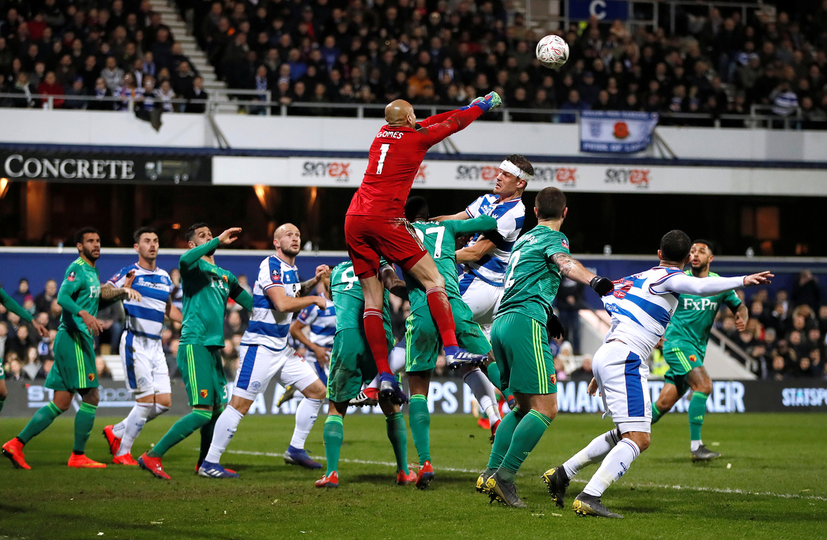 Soccer Football - FA Cup Fifth Round - Queens Park Rangers v Watford - Loftus Road, London, Britain - February 15, 2019 Watford's Heurelho Gomes in action REUTERS/David Klein