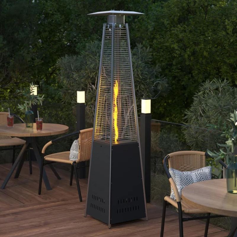 Patio heaters come in different shapes and sizes, and this one happens to be a pyramid that's big enough to make an impact. This unique design features a chrome cage that allows the flame to be visible while protecting those near the heater from getting too close for comfort. It also has wheels at the base, so it's easy to maneuver when positioning on your patio. The heater includes an automatic shut-off feature, holds a 20-pound propane tank (sold separately), and is made of a corrosion-resistant steel frame.