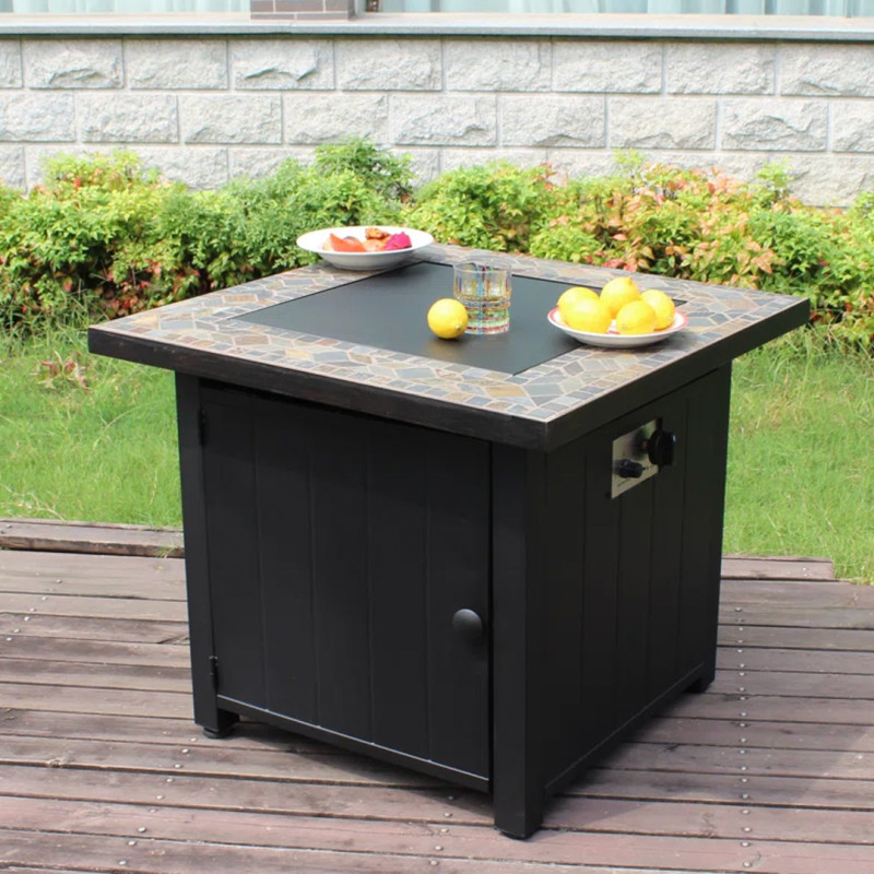 If you think that a fire pit can't have many special features, then you've never seen this one. In addition to the convenience of propane fuel operation, it also has a beautiful slate bar that wraps around the entire pit, gorgeous lava rocks to keep the fire burning, and a lid to cover the rocks which allows you to use the pit as a full table. The smokeless flame burns via 52,000 BTU rated burners. The pit also includes a quick-start electronic ignition system, so it's incredibly easy to operate.