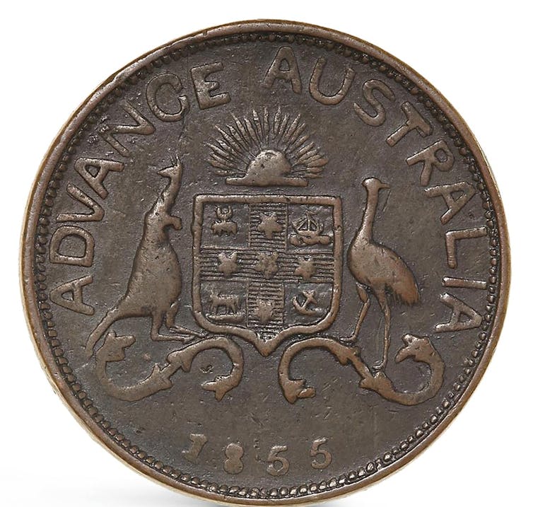 After federation, a distinctive official Australian currency emerged. This often used kangaroos as part of a coat of arms design.