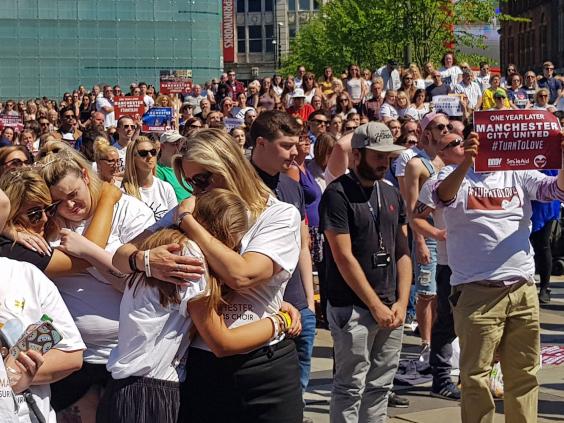 People in Manchester have gathered at events across the city to mark the first anniversary of the arena bombing that left 22 people dead and hundreds injured.