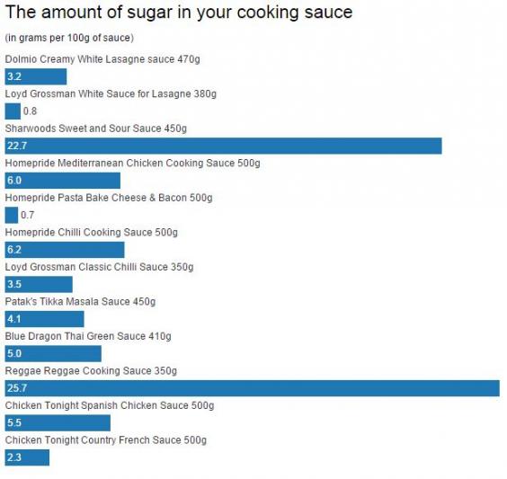 (The charts below show a helpful comparison between comparable cooking sauces. Dolmio's Creamy White Lasagne Sauce, which Mars classifies only appropriate for occasional eating, is marked at the top for comparison)