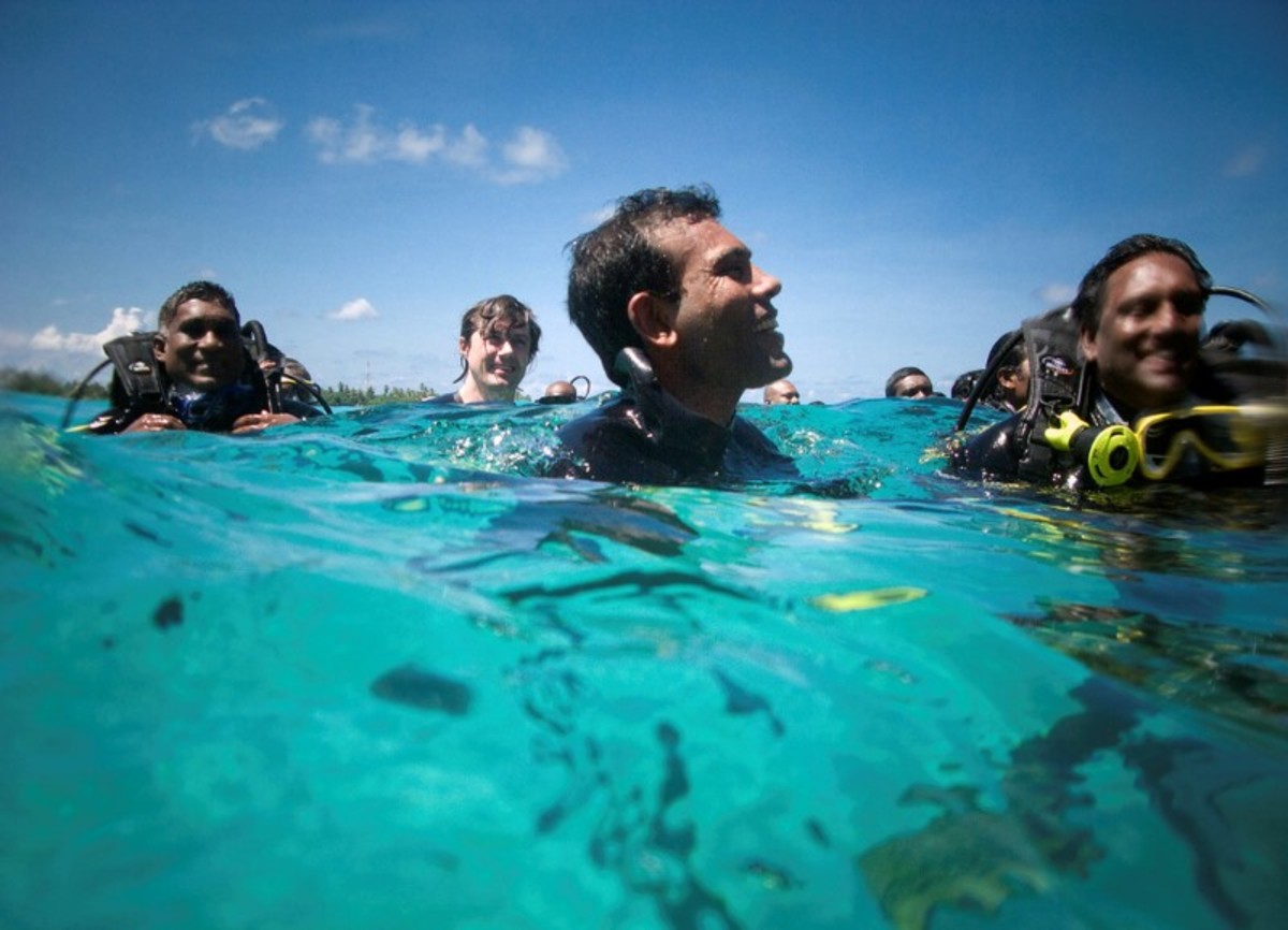 The archipelago's former president Mohamed Nasheed famously held a cabinet meeting underwater to draw attention to submerging land and global warming a decade ago.
