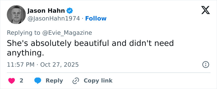 And then there were those still shocked by her denial not out of judgment, but because of how normalized injectables have become. “Nowadays, it is unbelievable that she didn’t inject anything into her face.”