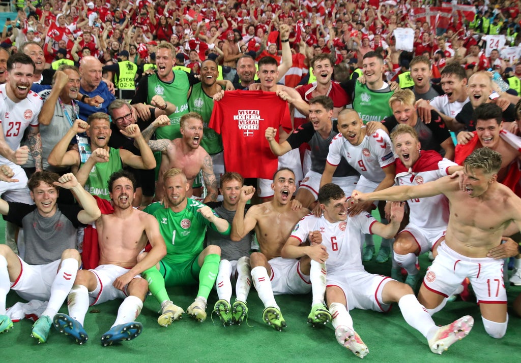 Euro 1992 winner and national team legend Peter Schmeichel is one of the many voices who have praised the team. “It is a national team, that shows us new ways to overcome such traumatic experiences. Togetherness. Hard work. Talk about it. Be open about speaking to psychologists. To cope with an emotional rollercoaster, going from one extreme to the other,” he said after the Russia game.