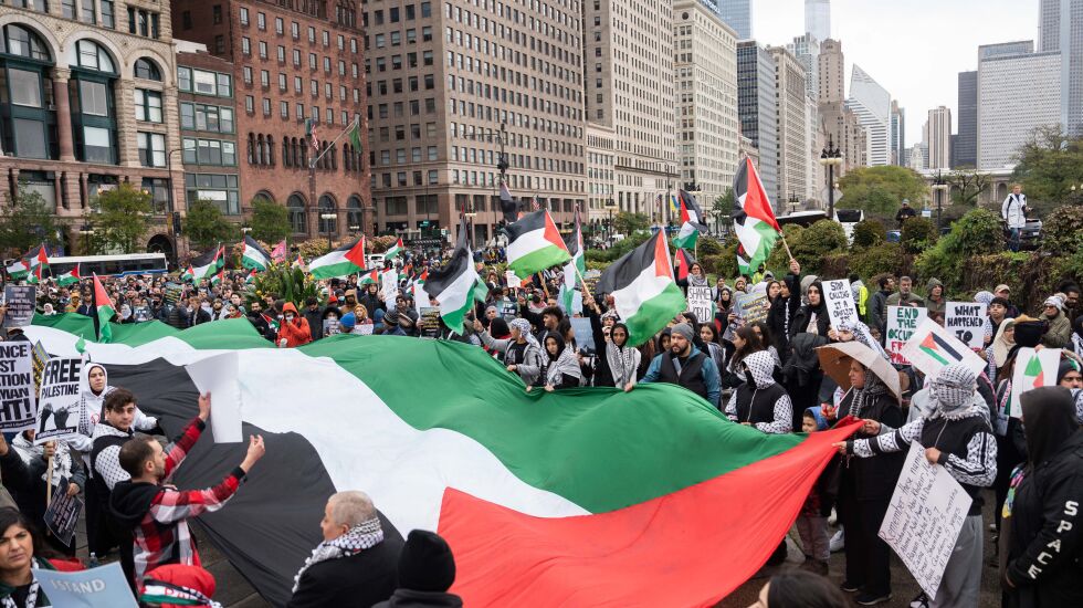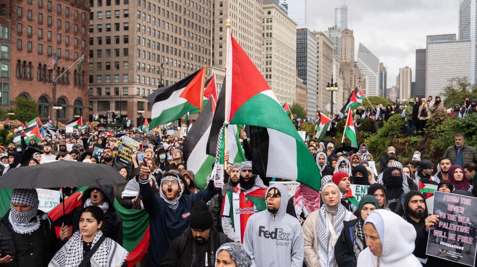Thousands of people took to the streets Saturday afternoon at a rally in downtown Chicago to show support for the Palestinian people amid a growing humanitarian crisis spurred by war between Israel and Hamas.