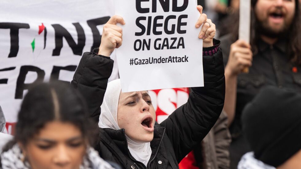“We’re here to pressure our own government,” one demonstrator said. “But we’re also here as part of a global mobilization to show all the complicit parties that we are watching, and we are paying attention.”