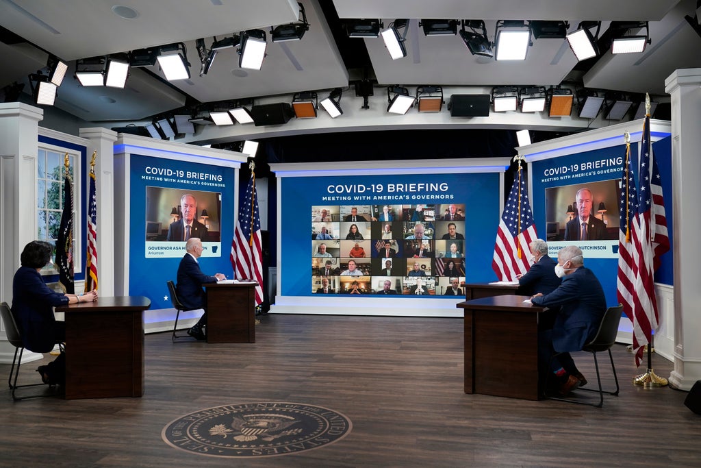 Speaking to reporters after the teleconference had concluded, Mr Biden said the governors had told him that they had “gotten all that they need,” but wanted to know what his advisors think is in store for the future.