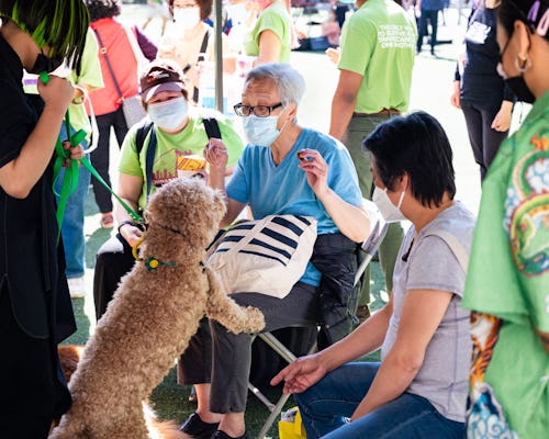 But for Tran, Jones, and so many other members of the AAPI community coming together right now, supporting each other isn’t just about preventing and responding to tragedy. It’s also about fostering joy and healing. Tran and Jones recently organized the AAPI Care Fair, which took place on a sunny afternoon in mid-May at Columbus Park in Manhattan’s Chinatown. The free event centered “joy, healing, health and safety” for the community through puppy therapy, live music, distribution of PPE, self-defense devices and courses, housing justice and immigrants’ rights resources, and many other necessities. Tran and Jones enlisted more than 150 volunteers and collaborated with 11 community organizations to make the fair happen. More than 2,000 people attended. “Michelle and I were so glad that we could provide such a wide breadth of services and resources,” Jones tells Mic. “We saw the community come together to lift up the most underserved folks. We are excited that so many — especially young people — came out to volunteer and give back. People are realizing that we can all do our part to protect Asian lives and lift up our community.”