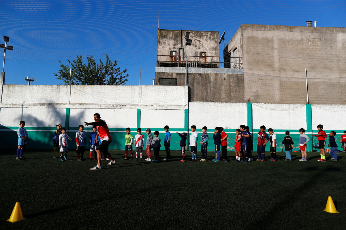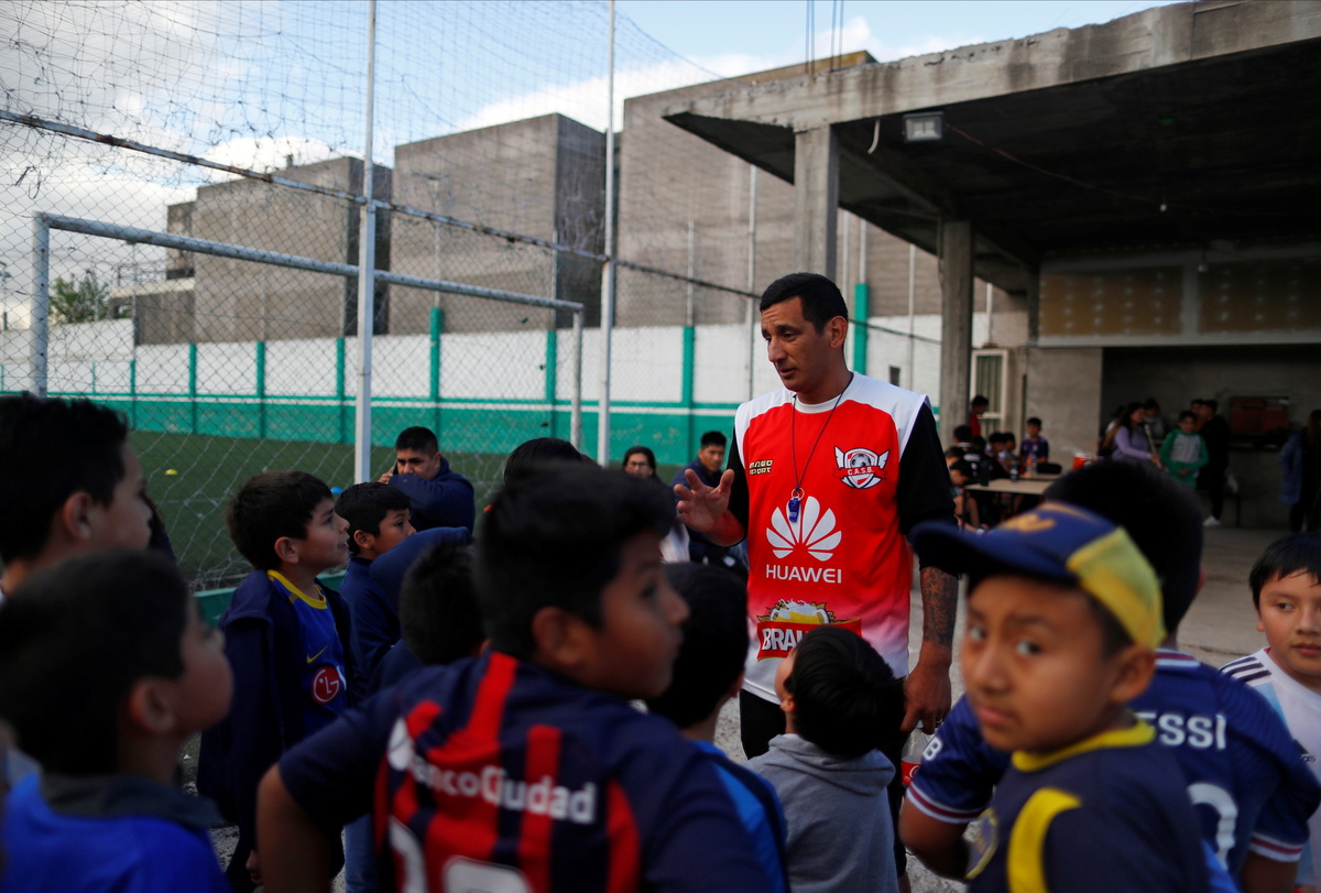 In his spare time, Rodriguez teaches soccer to kids and youths from poor households, so that they can aspire to a professional career that he once dreamed of as an escape from poverty.