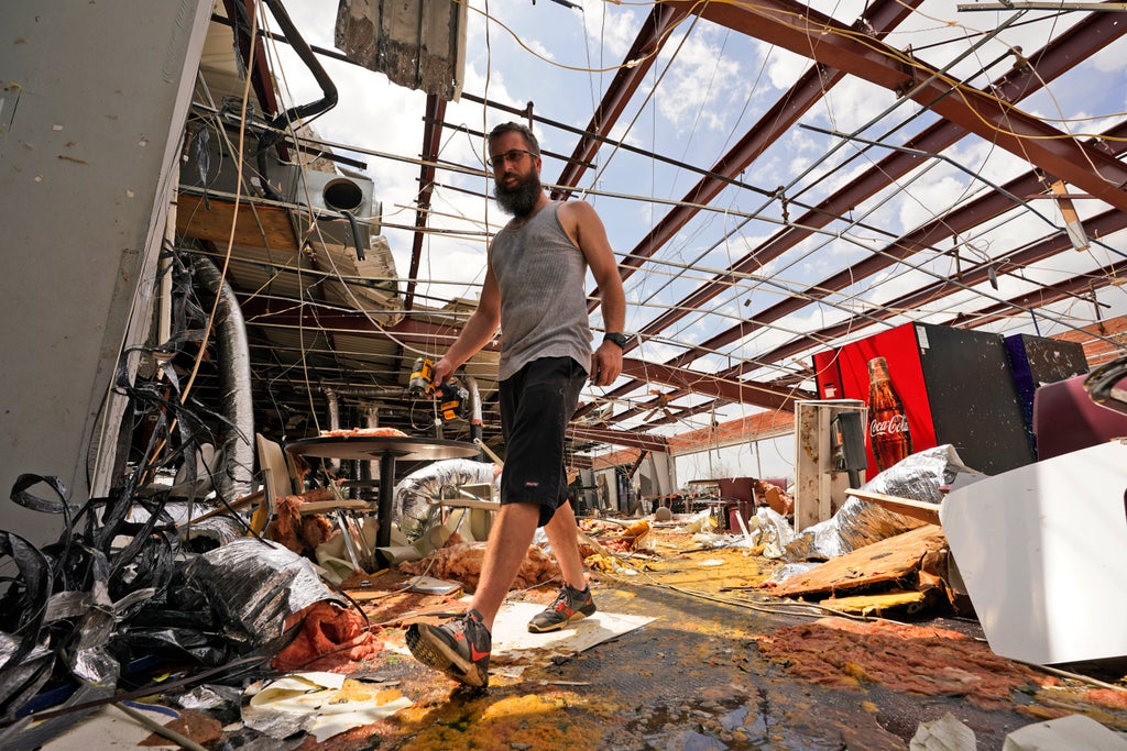 “It’s like a bomb went off and just blew off houses’ roofs, flattened trees, snapped them like matchsticks,” said Michael Cobb, taking in the destruction Tuesday from his front porch a couple of blocks away.