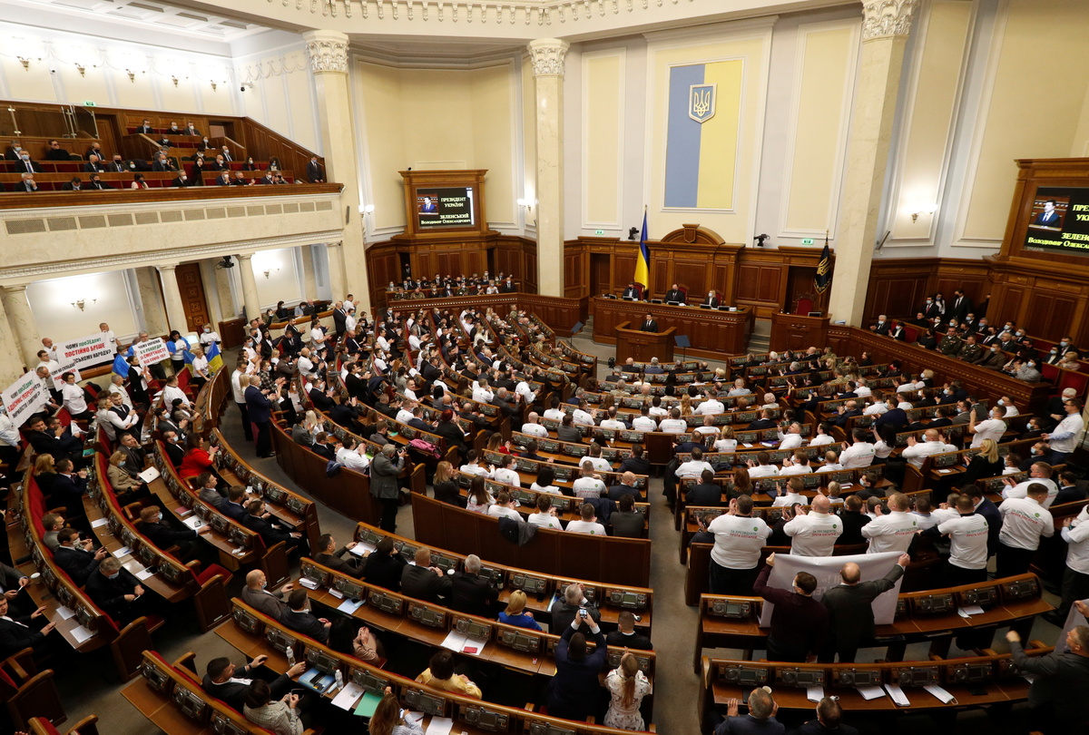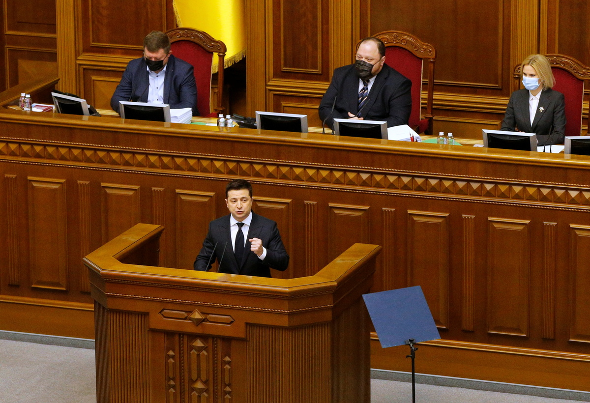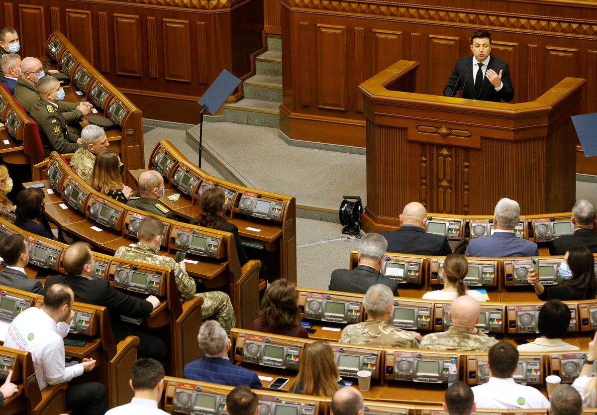 Zelenskiy was addressing parliament after Ukraine urged NATO to prepare economic sanctions on Russia and boost military cooperation with Kyiv as a way of deterring the Kremlin from launching a new attack after massing troops.