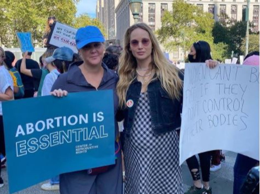 Amy Schumer and Jennifer Lawrence put on a joint front at an abortion rights rally in Washington DC this weekend.