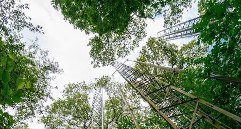 To study what even more CO₂ in the atmosphere will do to trees in future, we used a technique called Free-Air CO2 Enrichment (Face). This involves installing eight-storey high pipes on the upwind side of various patches of forest, and then gently releasing air infused with extra CO₂. We then monitor the trees to see if the CO₂ has had any effect.
