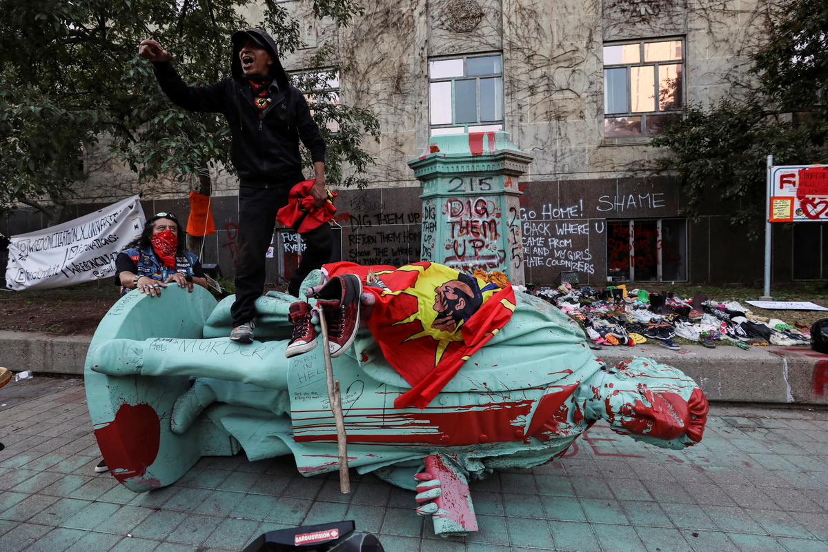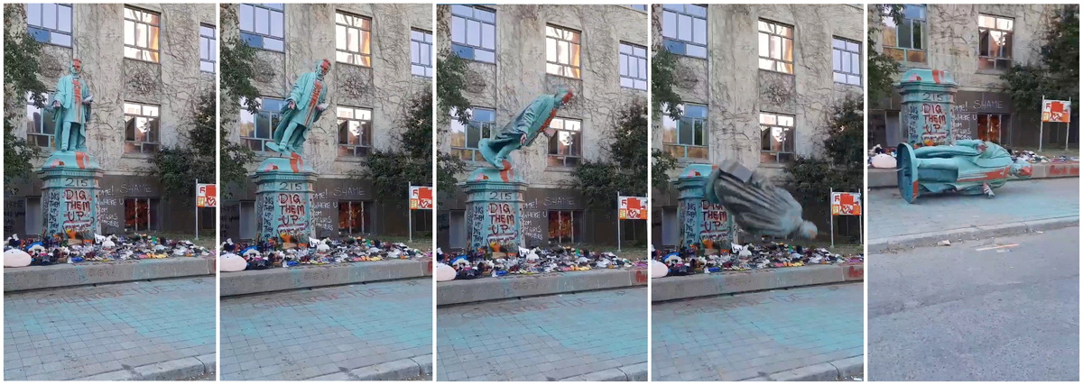 On Sunday, demonstrators tore down a statue of Egerton Ryerson, one of the architects of the residential school system, at the Toronto university named for him.