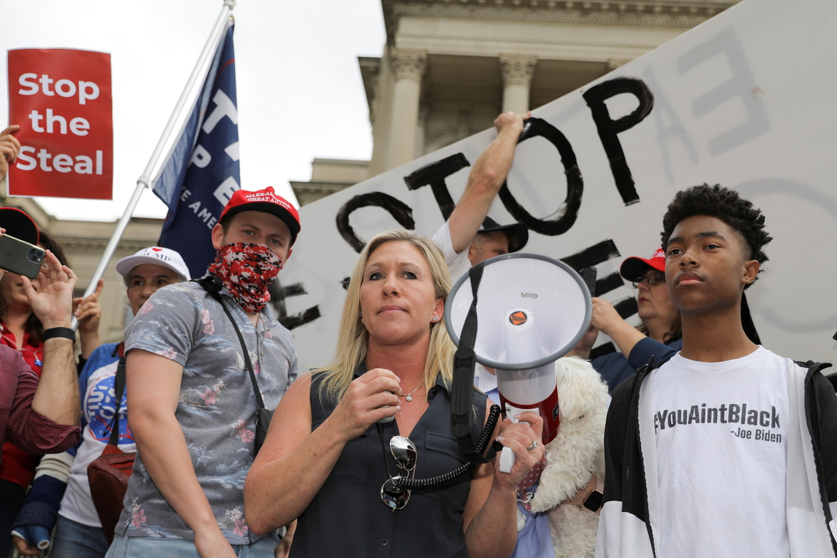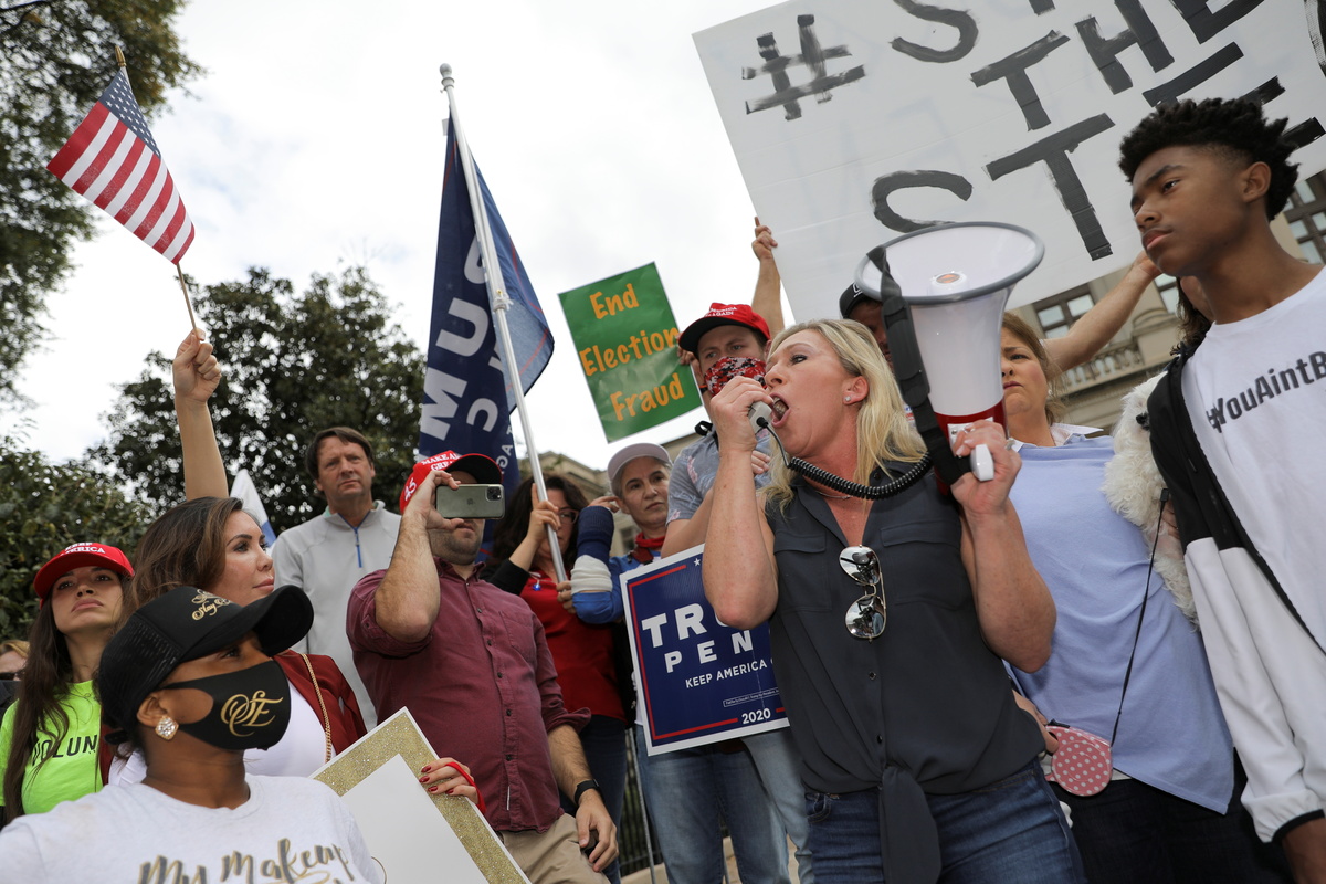 Angry pro-Trump "Stop the Steal" demonstrators gathered at state capitol buildings in Michigan, Pennsylvania and Arizona. Protesters in Phoenix chanted "We want audits!" One speaker told the crowd: "We will win in court!"