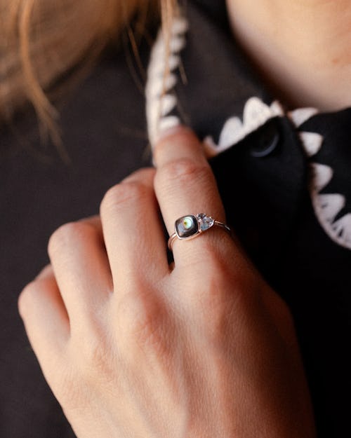 An abalone ring that makes beautiful use of asymmetry