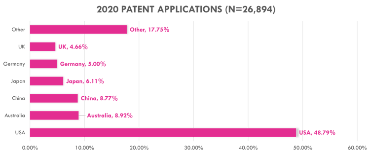 So unlike studies of the US Patent and Trademark Office, where the majority of patents come from US residents, a study of patents at IP Australia reflects more worldwide applications.