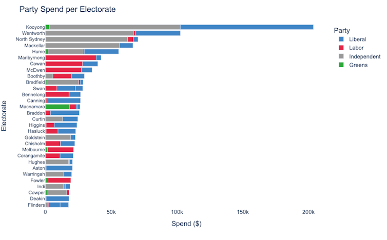 The first is the really significant spend from the “teal” Independents. Historically, many successful federal Independents (such as Tony Windsor, Rob Oakeshott or Cathy McGowan) have come from regional areas.