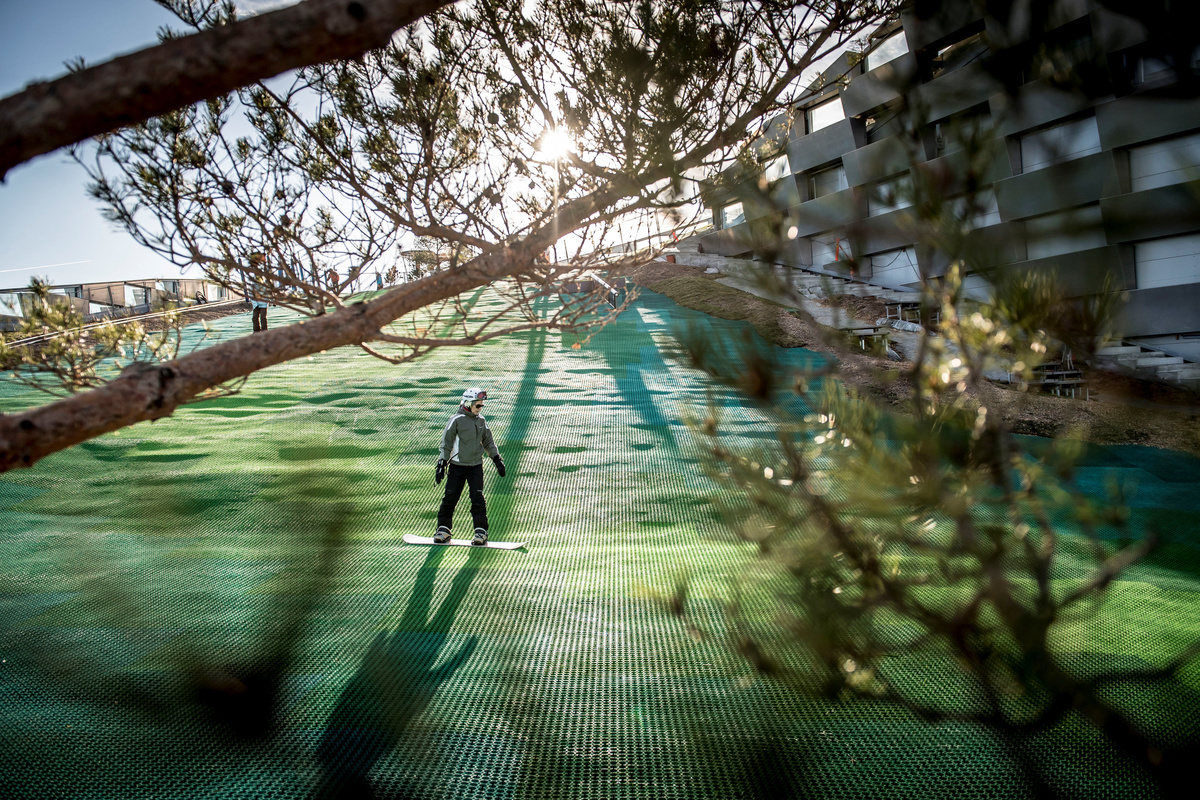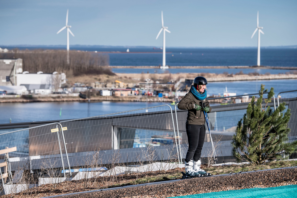"I think everybody is surprised to start with when they look at it and it's not snow," said Christian Ingels, the director at Copenhill. "It's green dry-slope material. After one or two runs, your mind is automatically adjusting so you feel exactly like skiing."