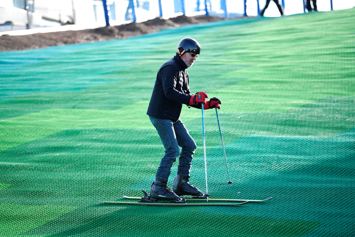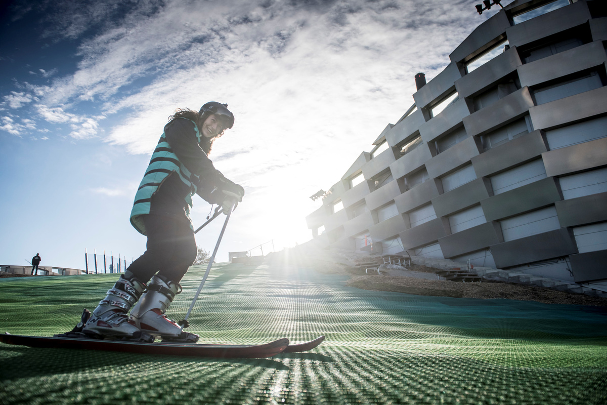"It's fantastic that one can ski without snow," said ski slope visitor Tommy Christensen. "It's a slightly different experience than to skiing in real snow, but it's my second run and I'll try it again. It looks promising."