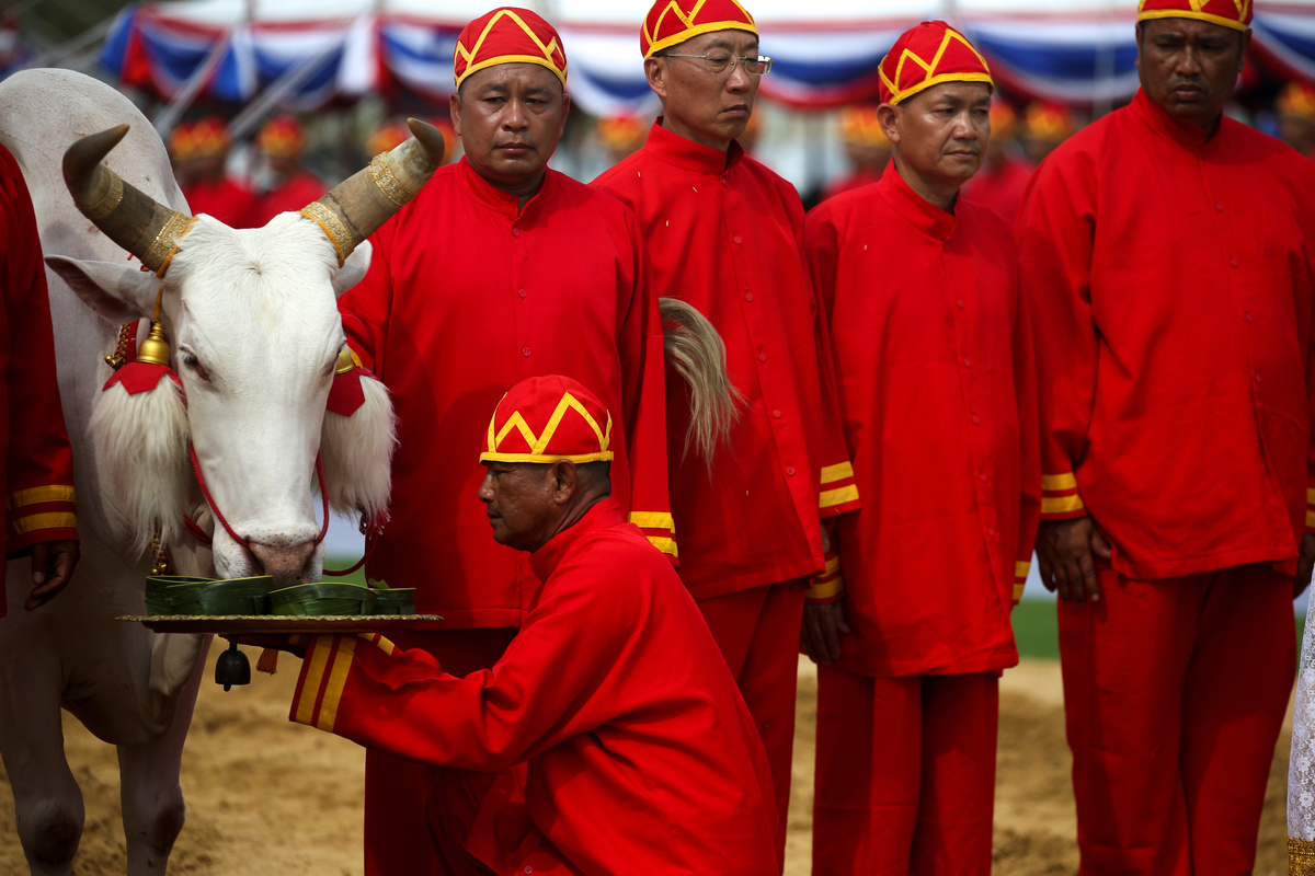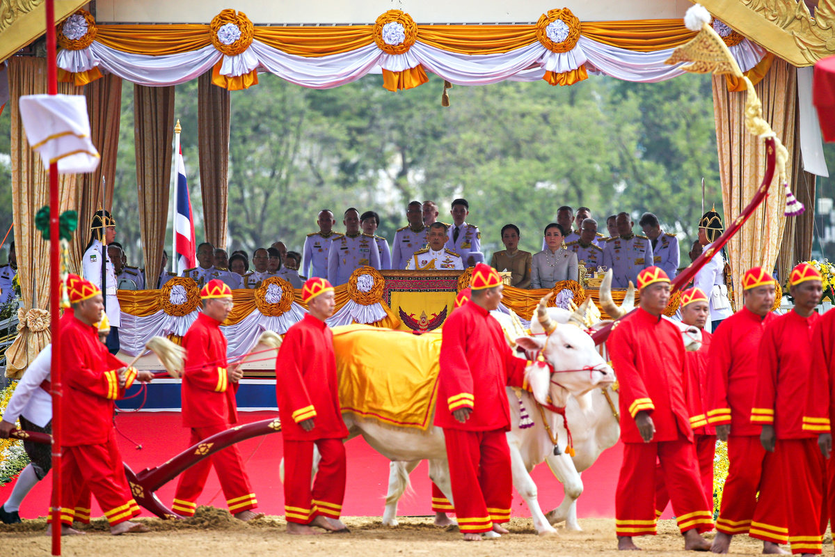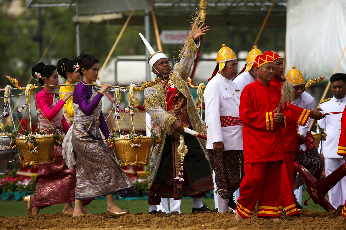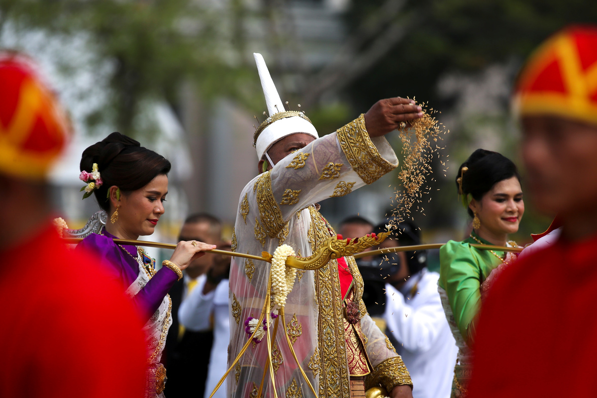 People rush past barriers to collect rice seeds after the annual royal ploughing ceremony in central Bangkok, Thailand, May 9, 2019. REUTERS/Athit PerawongmethaThai officials dressed in traditional costumes feed oxen during the annual royal ploughing ceremony during the annual royal ploughing ceremony in central Bangkok, Thailand, May 9, 2019. REUTERS/Athit PerawongmethaArnan Suwannarat, permanent secretary of the Thai Ministry of Agriculture and Cooperatives, dressed in a traditional costume, throws rice grains during the annual Royal Ploughing Ceremony in central Bangkok, Thailand, May 9, 2019. REUTERS/Athit PerawongmethaThailand's Queen Suthida (R) and Princess Bajrakitiyabha attend the annual Royal Ploughing Ceremony in central Bangkok, Thailand, May 9, 2019. REUTERS/Athit PerawongmethaArnan Suwannarat, permanent secretary of the Thai Ministry of Agriculture and Cooperatives, dressed in a traditional costume, throws rice grains during the annual Royal Ploughing Ceremony in central Bangkok, Thailand, May 9, 2019. REUTERS/Athit PerawongmethaThailand's King Maha Vajiralongkorn and Queen Suthida attend the annual Royal Ploughing Ceremony in central Bangkok, Thailand, May 9, 2019. REUTERS/Athit PerawongmethaThailand's King Maha Vajiralongkorn (C) and Queen Suthida watch the annual Royal Ploughing Ceremony in central Bangkok, Thailand, May 9, 2019. REUTERS/Athit PerawongmethaArnan Suwannarat, permanent secretary of the Thai Ministry of Agriculture and Cooperatives, dressed in a traditional costume, throws rice grains during the annual Royal Ploughing Ceremony in central Bangkok, Thailand, May 9, 2019. REUTERS/Athit PerawongmethaArnan Suwannarat, the permanent secretary of the Thai Ministry of Agriculture and Cooperatives, dressed in a traditional costume, greets Thailand's Queen Suthida during the annual Royal Ploughing Ceremony in central Bangkok, Thailand, May 9, 2019. REUTERS/Athit PerawongmethaThailand's King Maha Vajiralongkorn and Queen Suthida attend the annual Royal Ploughing Ceremony in central Bangkok, Thailand, May 9, 2019. REUTERS/Athit PerawongmethaThailand's Queen Suthida attends the annual Royal Ploughing Ceremony in central Bangkok, Thailand, May 9, 2019. REUTERS/Athit PerawongmethaThailand's Queen Suthida attend the annual Royal Ploughing Ceremony in central Bangkok, Thailand, May 9, 2019. REUTERS/Athit PerawongmethaThailand's King Maha Vajiralongkorn attends the annual Royal Ploughing Ceremony in central Bangkok, Thailand, May 9, 2019. REUTERS/Athit PerawongmethaThailand's King Maha Vajiralongkorn attends the annual Royal Ploughing Ceremony in central Bangkok, Thailand, May 9, 2019. REUTERS/Athit Perawongmetha