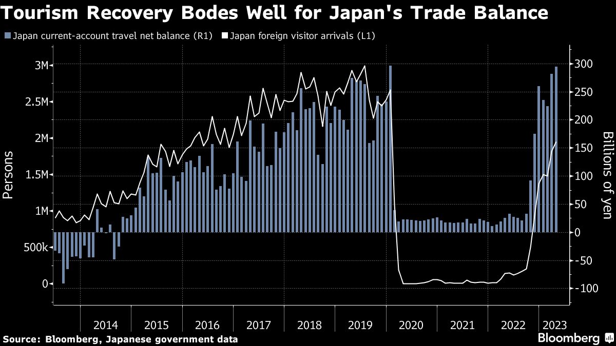First quarter spending by overseas visitors in Japan was around 88% what it was in 2019, with the biggest spenders coming from South Korea, Taiwan and Hong Kong. That helped lift economic growth by an annualized 1.1 percentage point in the first three months of the year.