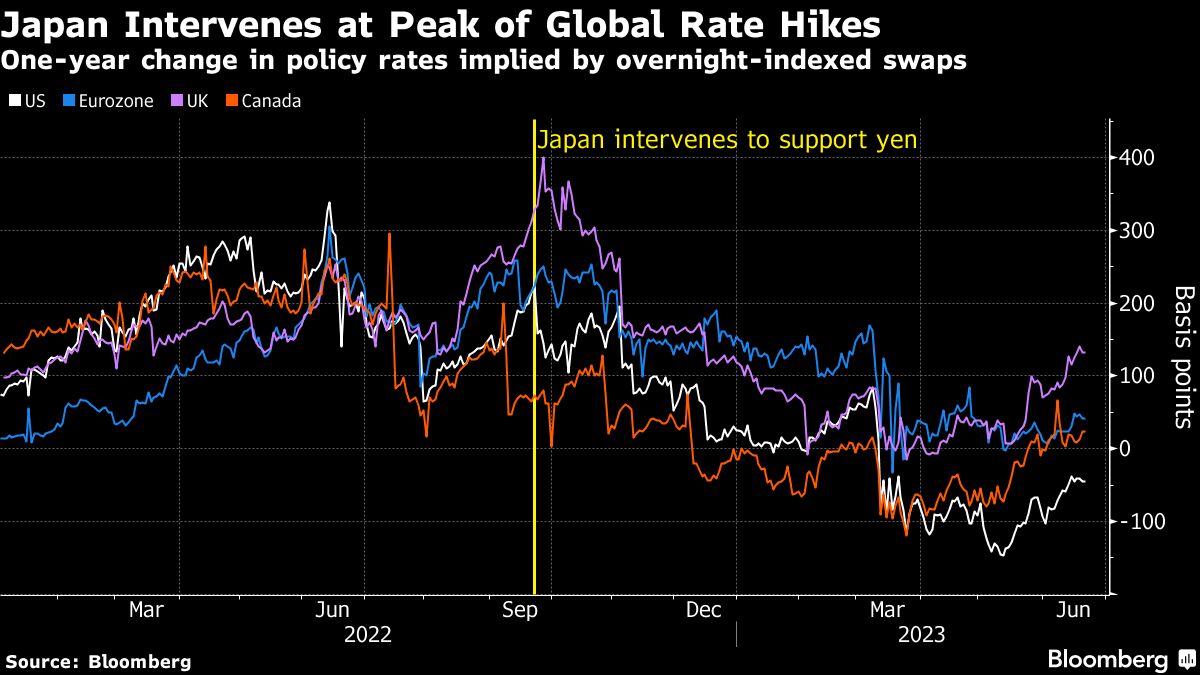 Even without a move by the central bank to normalize its policy, analysts see the yen regaining some strength as the finale of the global tightening cycle plays out. Expected rate increases by major central banks over the next 12 months are well below levels seen during intervention last year.