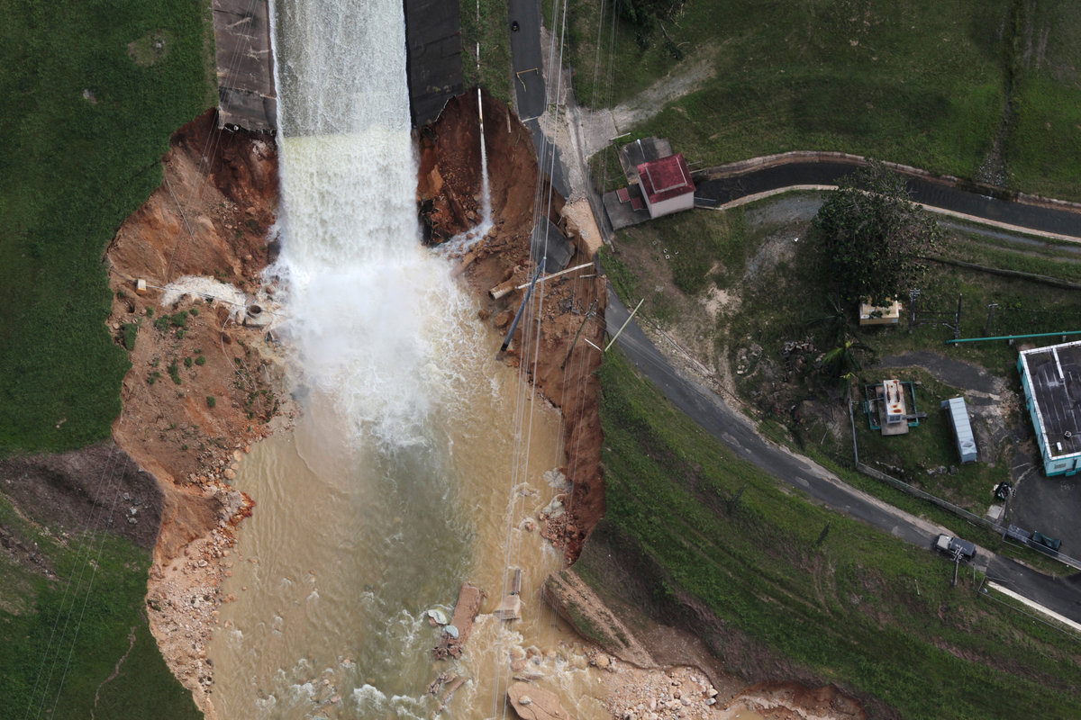 SAN JUAN, Puerto Rico (Reuters) - A dam in Puerto Rico weakened by heavy rains from Hurricane Maria was in danger of failing on Sunday, posing a flood threat to thousands of homes downstream as the storm-battered U.S. island territory struggled through a fifth day with virtually no electricity.